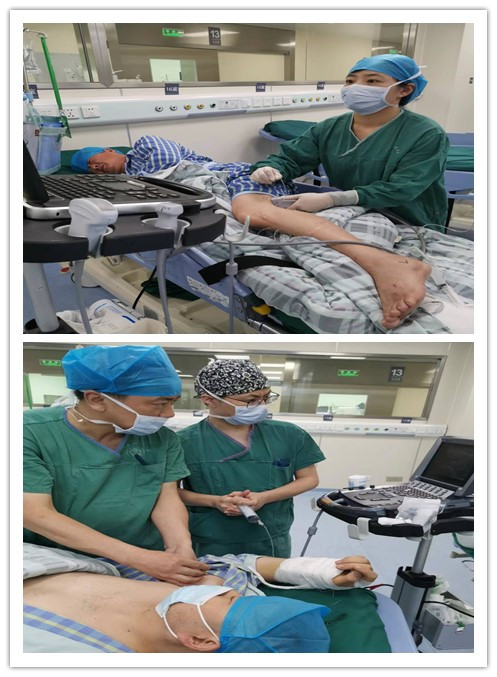 在陆续的帮扶工作中,麻醉科王勇医生积极选择合适的患者进行超声引导下的下肢神经阻滞,这种麻醉方法与我院常用的椎管内麻醉相比,优势明显,对麻醉医生的技术要求更高,我院麻醉科主任韦小友决定安排全科人员进行深入学习。鉴于本院病例过少,而中科大附一院南区有大量的手足外科手术,王勇医生通过积极协调省医教育处,并取得科室主任的同意后,逐步安排我院医生前往省医南区学习。进修期间,每人每天独自操作十多例患者,在操作间隙,参观各个手术间,观看并了解不同的手术麻醉。轮训结束后,我院麻醉科积极开展各项超声引导神经阻滞及辅助血管穿刺,改善穿刺方法及路径等,在保证安全的前提下提供更加精细、舒适的医疗服务。