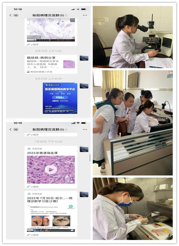 随着帮扶工作的深入开展,病理科陈瑶发现我院病理科的术中冰冻切片不是很理想,尤其是肺部切片,她邀请一位病理科技术员亲自来枞教学指导,经过这次的现场教学,我院病理科的冰冻切片有了质的提升。今年8月份,在陈瑶的组织协调下,省立医院病理科赠送我院一台电子扫描仪,她表示以后如有疑难切片,可以扫描成电子切片,方便大家共同讨论、一起学习。另外,陈瑶建立了省医-枞医病理科学习工作群,每周定期在群里发一些病理书籍、国内最新的前沿讲座以及大咖讲座,促进大家不断学习进步,她表示十分欢迎县医院病理科医生去省立医院规培进修。